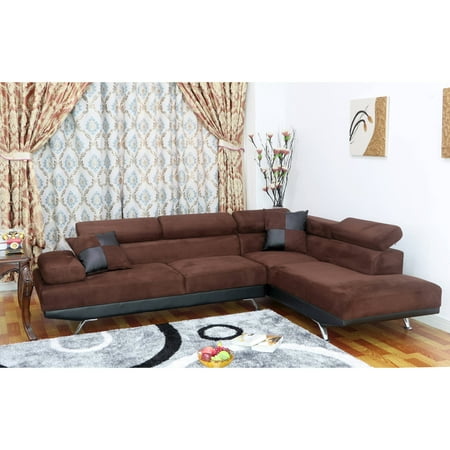 Ufe Sofia 2 Piece Microfiber Modern Right Facing Chaise Sectional Sofa Set Dark Brown