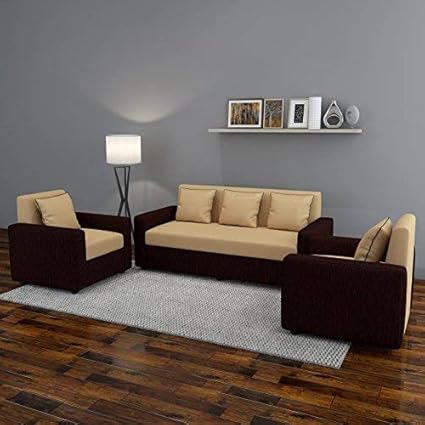 Bharat Lifestyle Lexus Fabric 3 1 1 Dark Brown Sofa Set