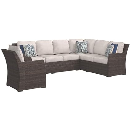 Ashley Furniture Signature Design Salceda Outdoor 3 Piece Sectional Set Sofa Sectional Chair With Cushions Beige Brown
