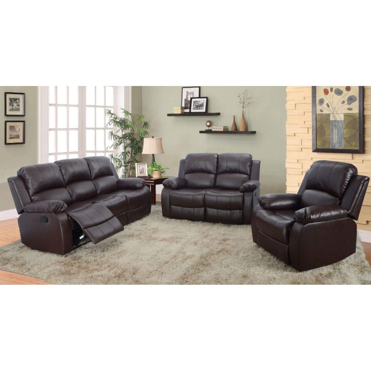 Aycp Furniture Brown Bonded Leather 3pc Living Room Reclining Sectional Sofa Set