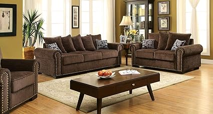 Corvallis 3pc Brown Microfiber Sofa Set W Nailhead Trim By Homelegance