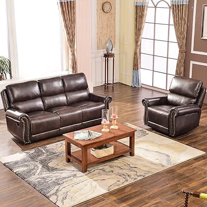 Harper Bright Designs Sectional Recliner Sofa Set Brown Chair 3 Seat Recliner
