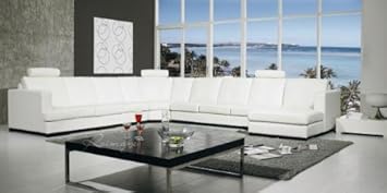 Canape D Angle Avec Tetieres Reglables Cuir De Couleur Blanc