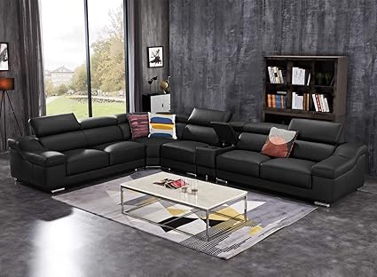 Canape D Angle En Cuir Italien 7 8 Places Houston Noir