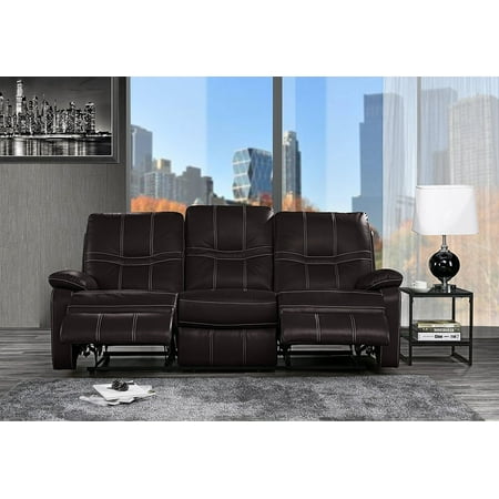 Ac Pacific Ac Pacific Ryker Collection Contemporary 3 Piece Upholstered Leather Living Room Set With Reclining Sofa Loveseat And Arm Chair Dark