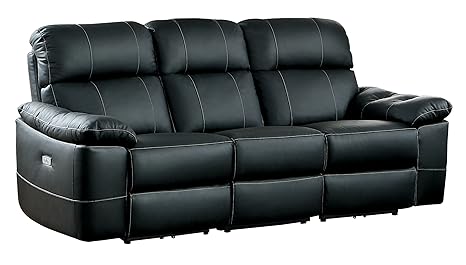 Homelegance 8223bk 3pw Nicasio Contemporary All Leather Power Reclining Sofa Black