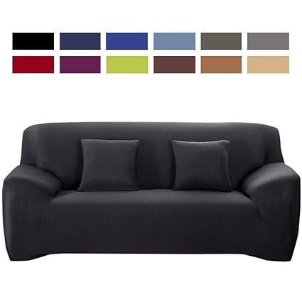 Goodtime Slip Over Easy Fit Elastic Fabric Couch Stretch Settee 4 Seater Sofa Covers Protector Black