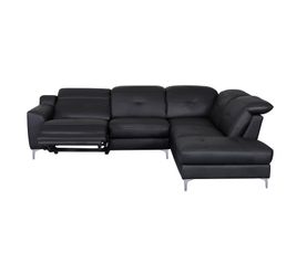 Canape D Angle Relax Electrique En Cuir Sitia Noir Angle Droit