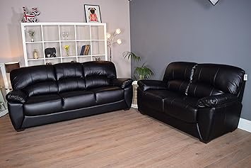 Made In Uk Texas Lot 3 Canape 2 Places Cuir Noir Aire