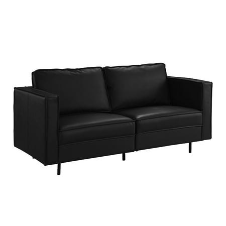 Mid Century Modern Plush Leather Living Room Sofa Black