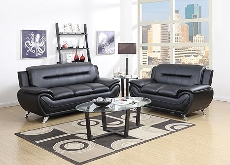Happy Homes Camden Modern Black Bonded Leather Sofa And Loveseat Set 2pcs
