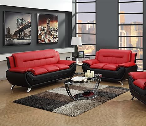 Gtu Furniture Contemporary Bonded Leather Sofa Loveseat Set Sofa And Loveseat Red And Black