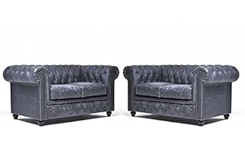 Chesterfield Canape 2 Places En Cuir Lave A La Main Noir