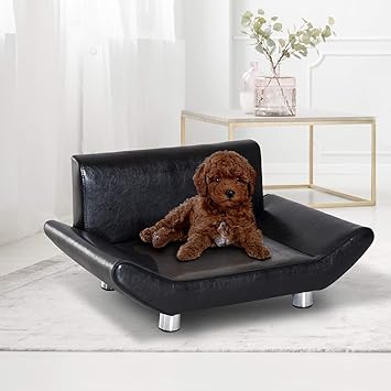 Pawhut Lit Canape Design Contemporain Pour Chiens Chats 72l X 45l X 35h Cm Metal Simili Cuir Noir