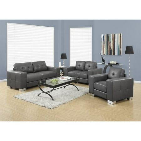 Monarch 3 Piece Leather Sofa Set In Charcoal Gray