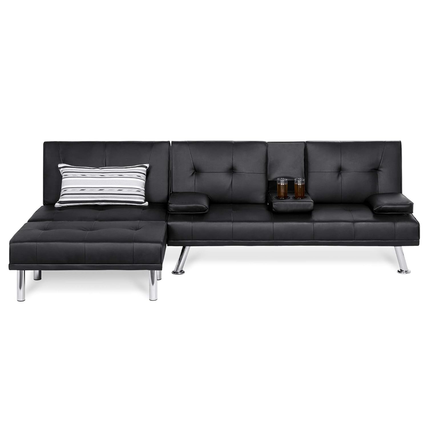 Best Choice Products Faux Leather Upholstery 3 Piece Modular Modern Living Room Sofa Sectional Furniture Set W Convertible Double Futon Bed