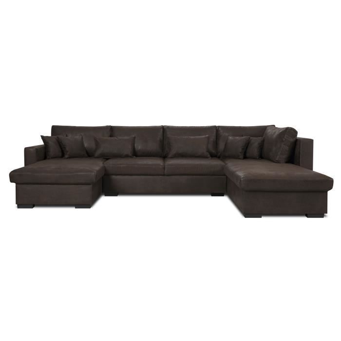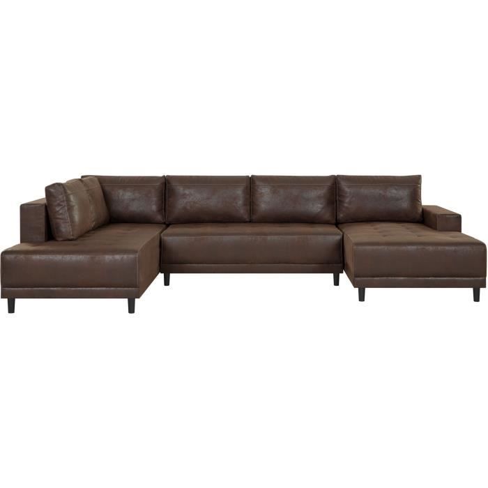 Nordic Canape Panoramique En U 7 Places Convertible Industriel Vintage Angle Gauche Couleur Marron