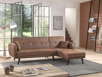 Bestmobilier Folke Vintage Canape D Angle Reversible Convertible Style Scandinave Retro Microfibre Marron Vieilli
