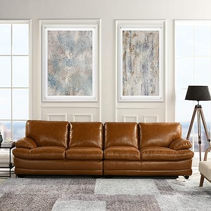 Stone Beam Charles Classic Oversized Leather Sectional Sofa Couch 92 W Saddle Brown
