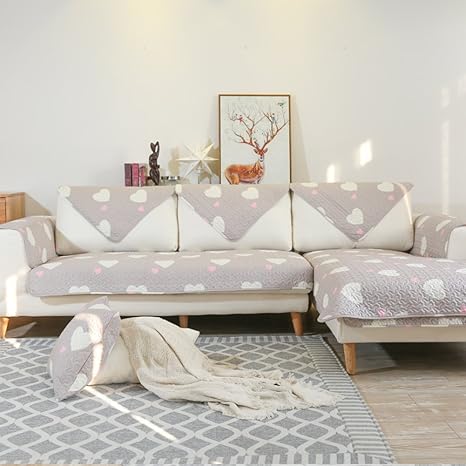 Lovehouse Cotton Sofa Cover Slipcover Quilted Non Slip Sofa Cover For Sectional Couch Furniture Sofa Protector For 2 3 Cushion Couch E