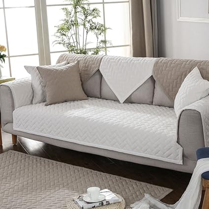 Sofa Cover Cotton Slipcover Quilted Non Slip Couch Sofa Sets Decoration Furniture Protector Sectional White 90x210cm 35x83inch