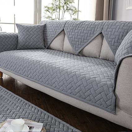 Lovehouse Cotton Sofa Cover Slipcover Quilted Non Slip Sofa Cover For Sectional Couch Furniture Sofa Protector For 2 3 Cushion Couch Grey