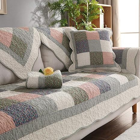 Amazon Com Sqinna Cotton Sofa Cover Quilted Plaid Pattern