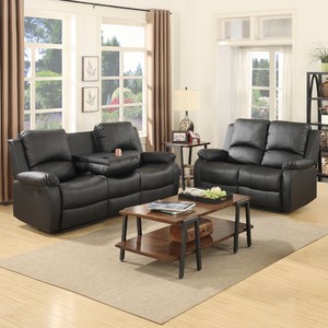 Roma Black Recliners Leather Sofa Set 3 2 Seater Bonded Leather