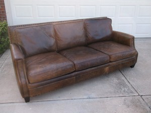Details About Bernhardt Clairmount Brown Distress Leather Sofa 86 Long