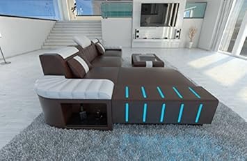 Moderne Canape En Cuir Bellagio L Forme Design Avec Led