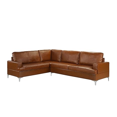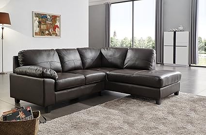Canape D Angle Boston En Cuir Veritable Marron De