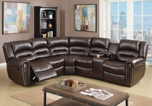 Details About Motion Recliner Sectional Sofa Corner Couch Stud Brown Bonded Leather Console