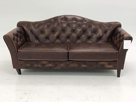 Chesterfield 2 Seater Antique Brown Leather Sofa Settee