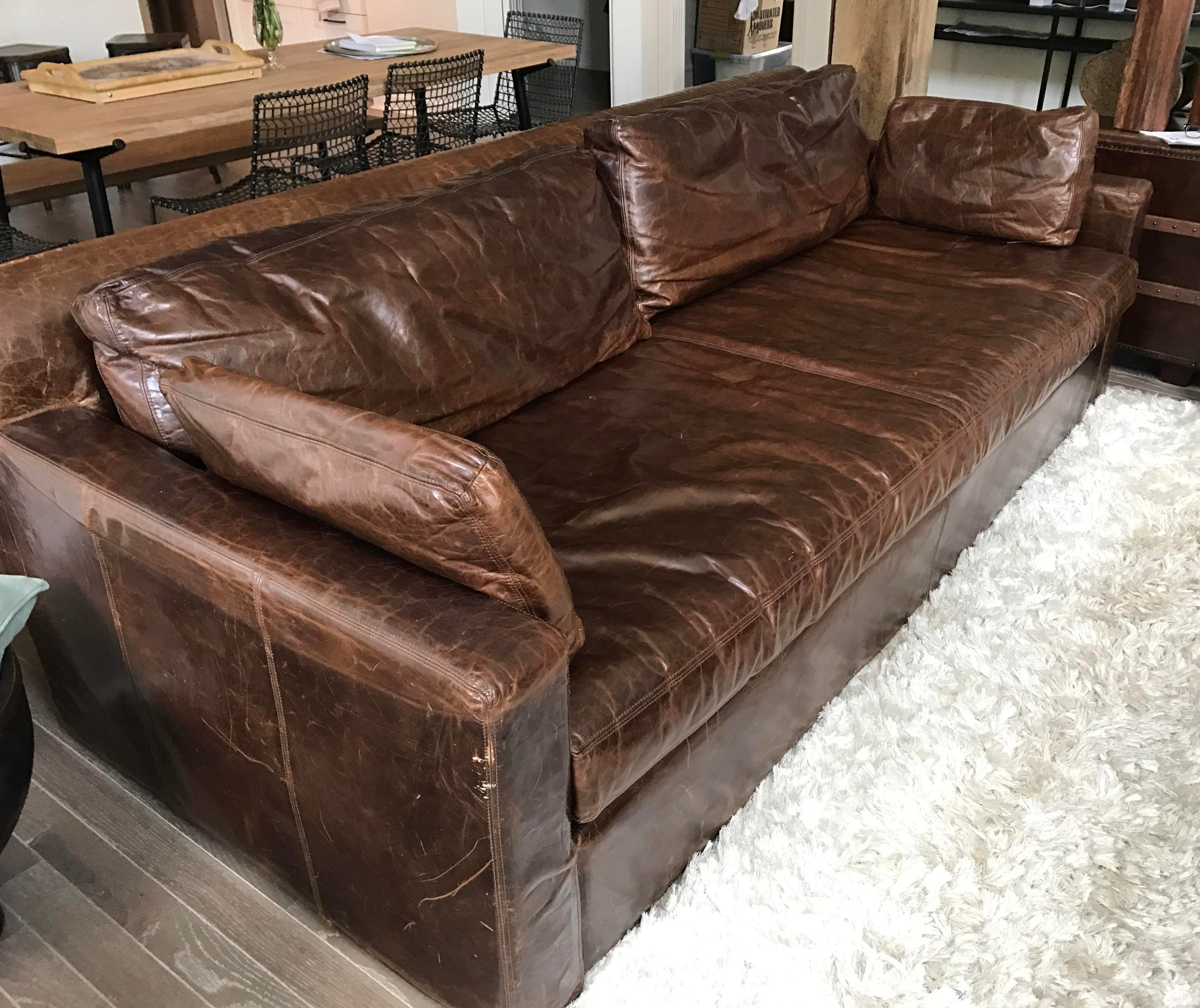 Restoration Hardware Belgian Track Arm Leather Sofa