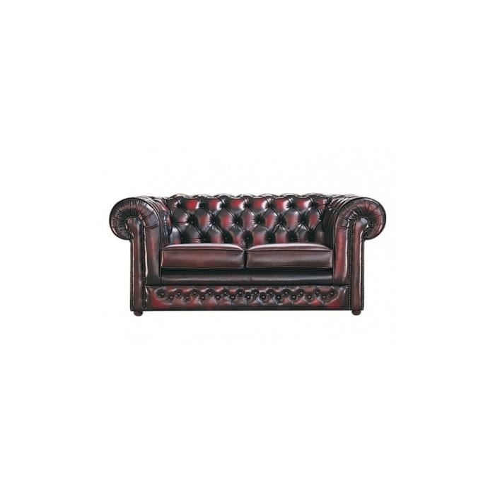 Canape Deux Places En Cuir Chesterfield Rouge Achat