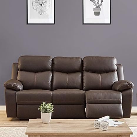 Canape Relax Electrique 3 Places Cuir Brun Esther L 211