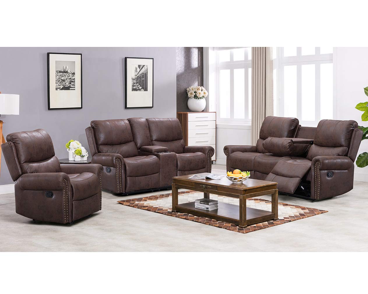 Fdw Recliner Sofa Pu Leather Set 3 Pcs Motion Sofa Loveseat Recliner Sofa Recliner Couch Manual Reclining Chair 3 Seater For Living Room Brown