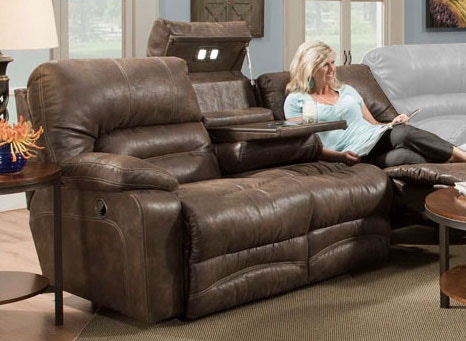 Voyager Lay Flat Reclining Sofa With Drop Down Table In Brandy Fabric By Catnapper 43845
