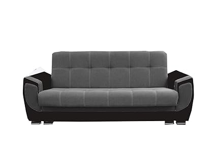 Meublo Canape Convertible 3 Places Tissu Et Simili Cuir Lilly Gris Noir Tissu