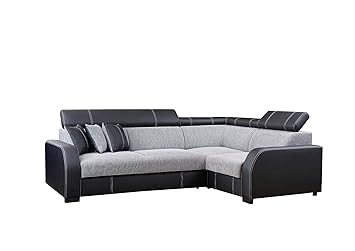 Details Sur Canape D Angle Convertible Lit Tissu Et Simili Cuir Bonita Noir Noir Simili Cuir