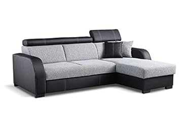 Meublo Canape D Angle Convertibles 3 4 Places Tissu Simili Cuir Cobby Noir Canape D Angle Droit