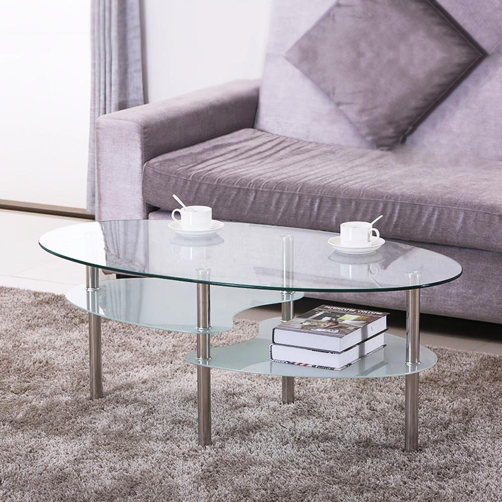 Details About Yaheetech Round Oval Glass Top Coffee Table Center Table Sofa Side Cocktail