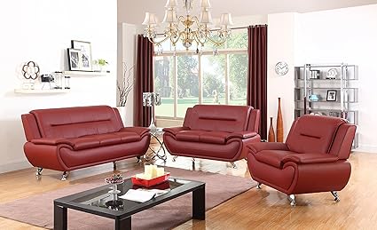 Golden Coast Furniture 3 Pc Leather Sofa Sectional Sets With Multiple Colors Red