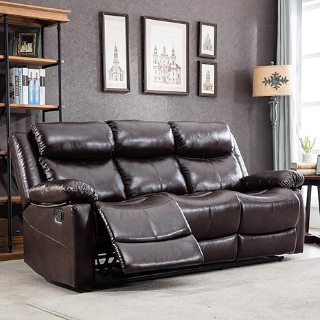 Harper Bright Designs Sectional Leather Sofa Recliner Sofa Chair Manual Recliner Reclining Sofa Couches For Living Room 3 Seat Brown