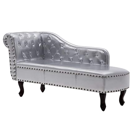 Vidaxl Canape Meridienne Chesterfield Argent Similicuir Capitonne Neuf