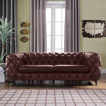 Canape Chesterfield Cuir Bordeaux Capitonne Cuir