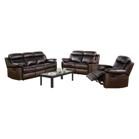Abbyson Living Giorgio 3 Pc Top Grain Leather Reclining Sofa Set