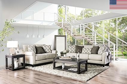 Amazon Com Esofastore Alisa Living Room Furniture Ivory