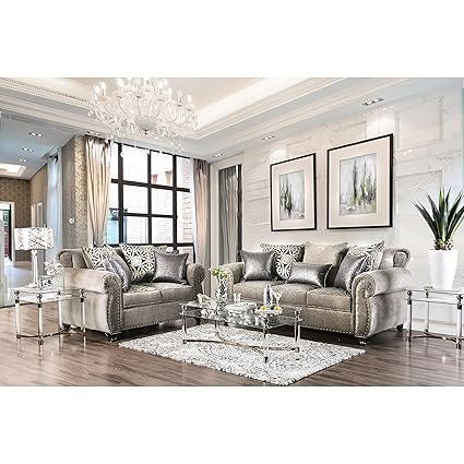 Furniture Of America Kayley 2 Piece Chenille Sofa Set In Light Gray