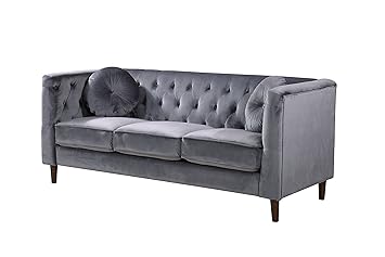 Container Furniture Direct Kitts Velvet Upholstered Modern Chesterfield Sofa Gray
